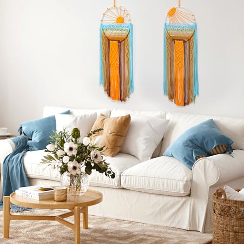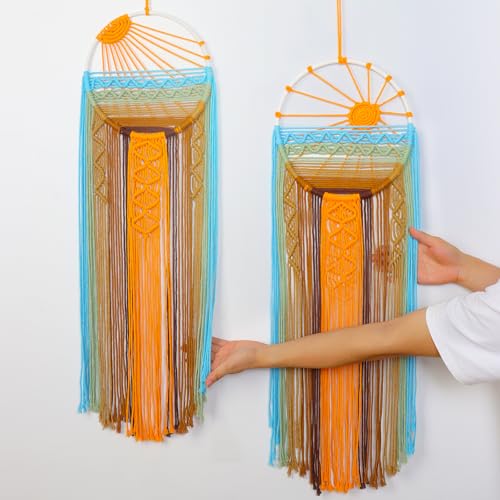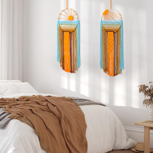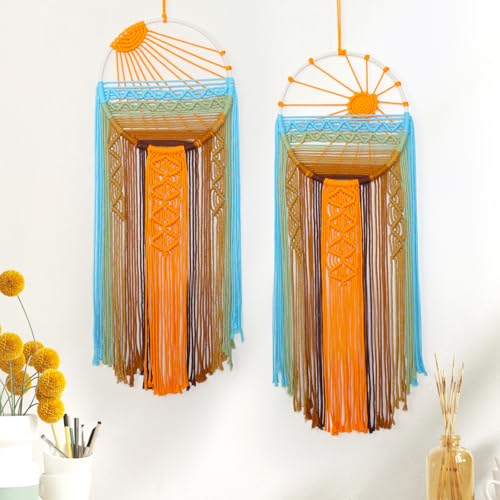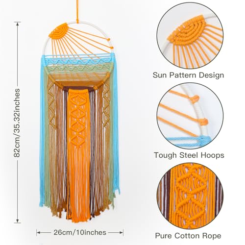 Betylifoy - سجادة مكرمية كبيرة للتعليق على الحائط بتصميم بوهيمي من دريم كاتشر لديكور المنزل وغرفة النوم والحضانة المعيشة شروق الشمس وغروب برتقالي