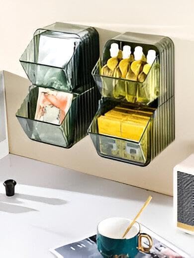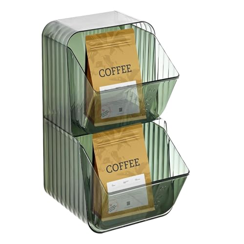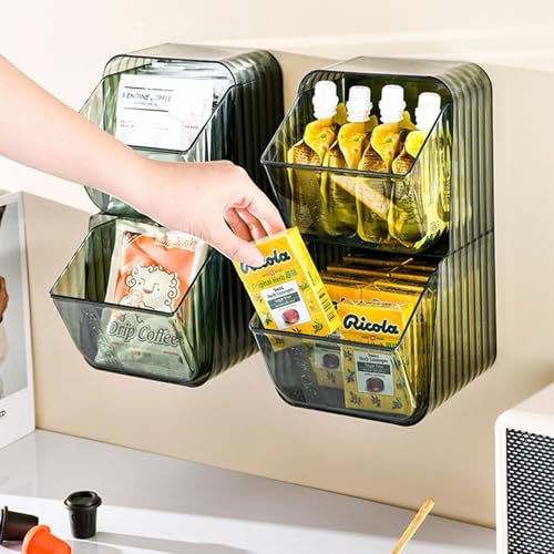Generic - محطة مشروبات - منظم اكريليك شفاف يثبت على الحائط مع أدراج للقهوة والشاي والسكر والكريم؛ يوفر مساحة إضافية على سطح الطاولة ويتضمن أطباق عميقة (الخيار 2، قطعتين)