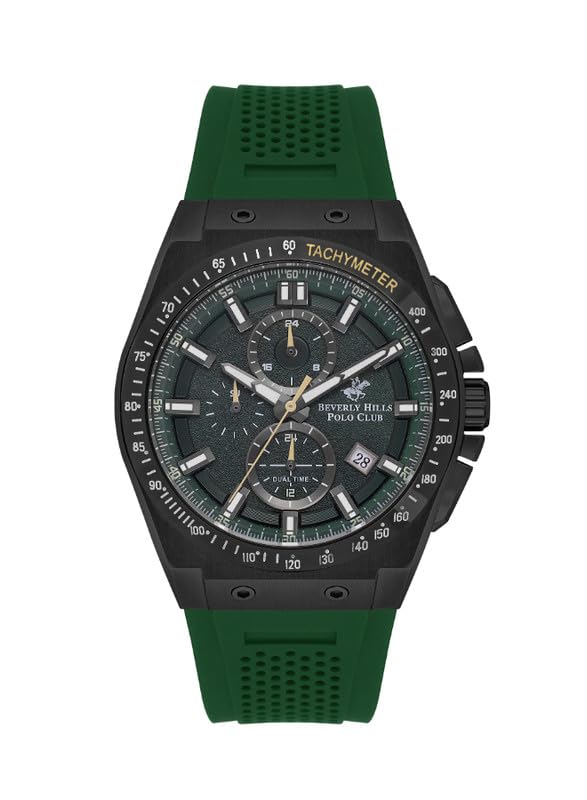 Beverly Hills Polo Club - ساعة يد متعددة الوظائف بمينا خضراء للرجال من بيفرلي هيلز بولو كلوب - BP3541X.675