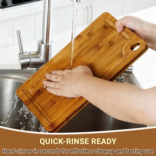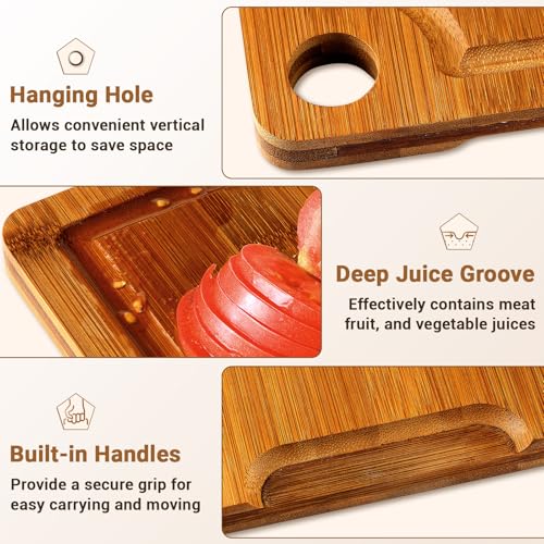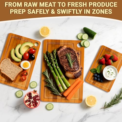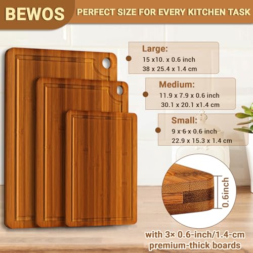BEWOS - ألواح تقطيع من البامبو مع فتحة تعليق، لوح تقطيع خشب بمقابض وأخاديد لتجميع العصارة، لوح تقطيع خشبي للمطبخ لتقطيع اللحوم والخضروات والجبن والخبز من بيوس، 3 قطع