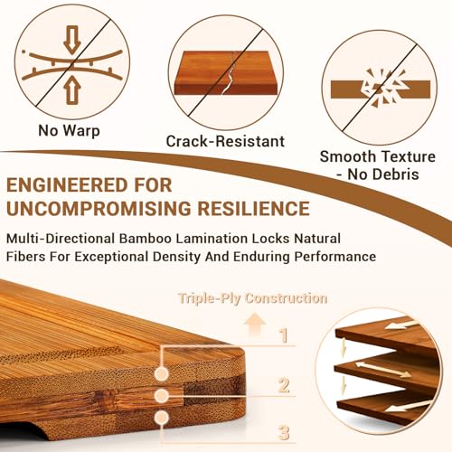 - 【مظهر أنيق، فكرة هدية ممتازة】 بفضل تشطيبها الغني المعالج بالكربون وعروق الخشب الطبيعية، تضفي مجموعة ألواح الخيزران هذه أناقة عصرية على أي مطبخ. تُعد خيار الهدية الأفضل مقارنة بألواح التقطيع الأخرى ومناسبة لافتتاح المنازل أو المناسبات الاحتفالية. ومن أجل اطمئنانك التام، فإن لوح التقطيع الخشبي الفاخر هذا مشمول بضمان لمدة عام، وهذا يضمن جودته التي يمكنك الاعتماد عليها. بفضل التصميم الفني الراقي والحماية المؤكدة، يُعد لوح التقطيع هذا اختيارًا نموذجيًا للاستخدام في المنزل وتقديم الهدايا.