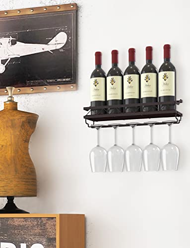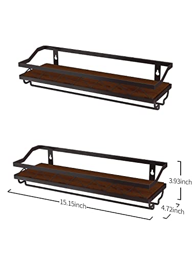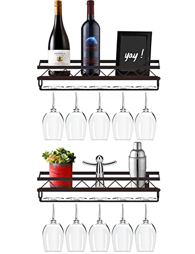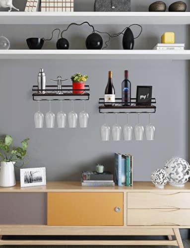 Bextcok - رف مشروبات يثبت على الحائط، رف زجاجي عائم يثبت على الحائط مع حامل زجاج، رف تخزين خشبي ريفي للمطبخ وغرفة الطعام والبار، عبوة من قطعتين
