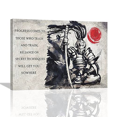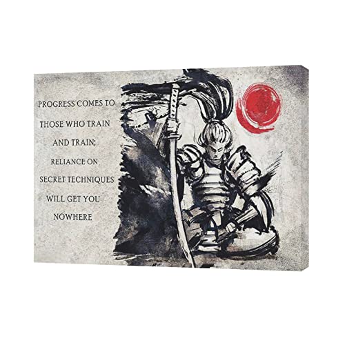 Beynepe - لوحة فنية جدارية بتصميم ساموراي الياباني صور بورتريه محارب ياباني مؤطرة باقتباسات ملهمة قماش مطبوع ديكور فني منزلي حديث لغرفة النوم وغرفة المعيشة 16 انش × 12 متعدد الألوان