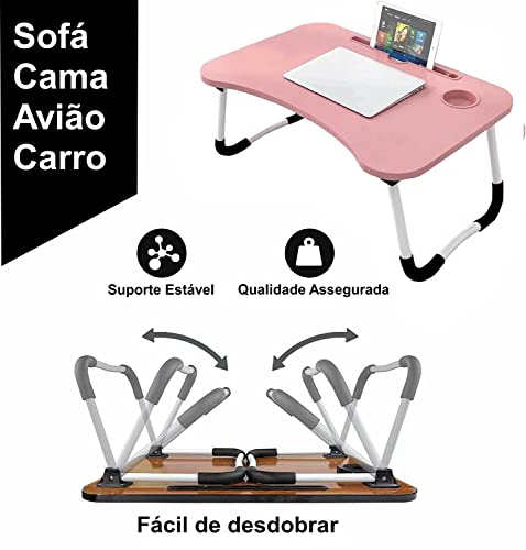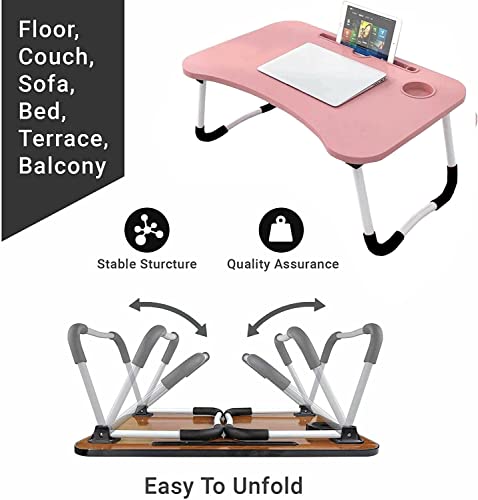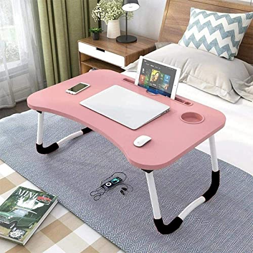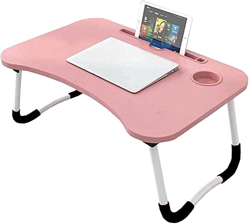 BEZZTER - طاولة خشبية محمولة قابلة للطي للنوت بوك والسرير والكنبة، لون وردي، تامانهو ونيكو
