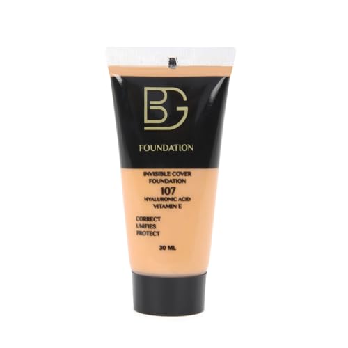 BG - كريم أساس ١٠٧، ٣٠ مل | كريم أساس سائل بتغطية كاملة | لمسة نهائية مطفية تدوم طويلًا | مناسب لجميع ألوان البشرة من بي جي