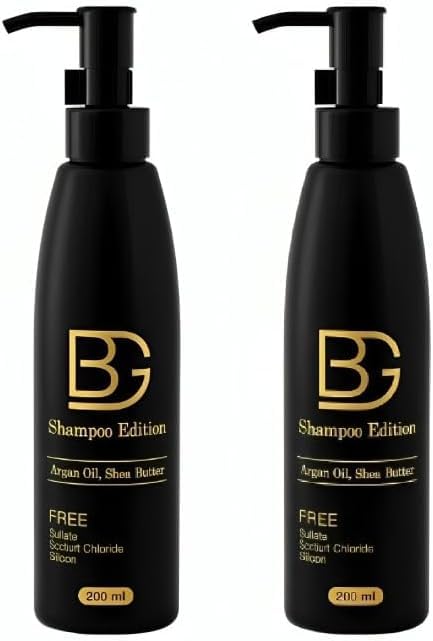 BG - شامبو شعر سائل للشعر الجاف والمجعد خال من الكبريتات ويحتوي على زيت الأرجان وزبدة الشيا مضاد لسقوط الشعر لإصلاح الأطراف المتقصفة من بي جي، 200 مل (عرض 1+1)