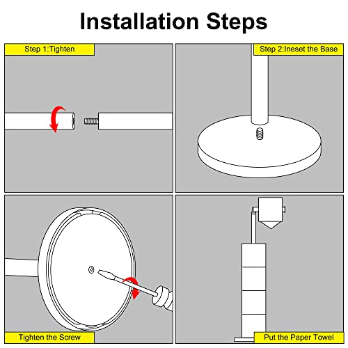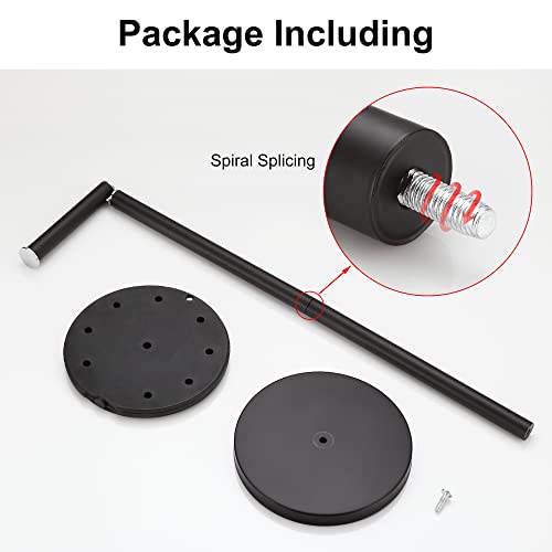 - مريح وعملي: يتميز ذراع حامل ورق التواليت بدون ثقب بتصميم قابل للطي، والذراع على شكل حرف L يحمل لفة واحدة، ويوفر نمط القضيب العمودي مساحة تصل إلى 5 بكرات تواليت. يبلغ ارتفاع حامل ورق التواليت المصنوع من الأسود 21.2 انش/ 54 سم، وذراع اللف 5.1 انش/13 سم وقطر القاعدة المستديرة 6.7 انش/17 سم.