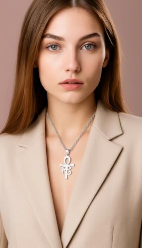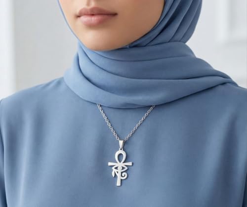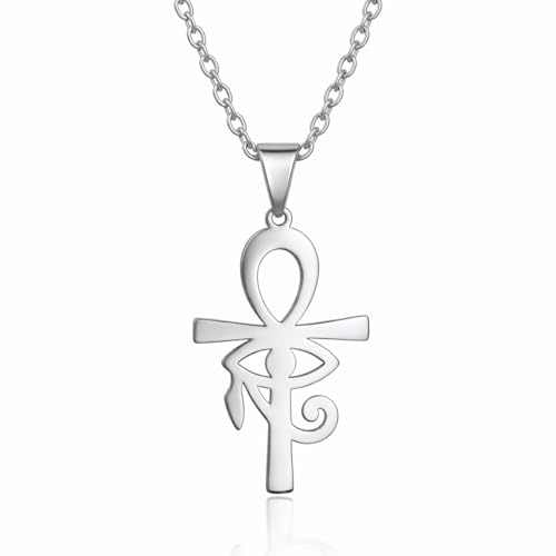 BJS - سلسلة وقلادة مفتاح الحياه عين حورس استالس مطليه بالفضى من بى جى اس