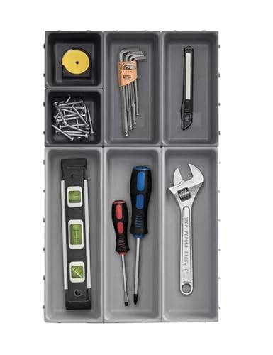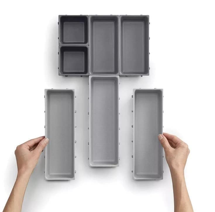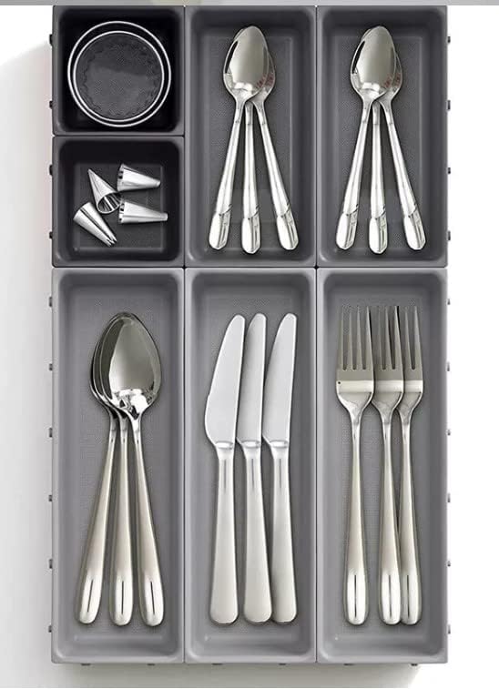 BHADANI SALES - مجموعة ادوات تناول الطعام مكونة من 7 قطع باداني سيلز - طقم منظم سكاكين قابل للتعديل للمطبخ | بلاستيك | رمادي