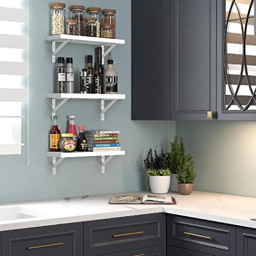 BHFOW - طقم أرفف معلقة تثبت على الحائط، رف خشبي معلق للعرض والتخزين يتضمن دعامات تثبيت من BHFOW، ابيض، 3 قطع