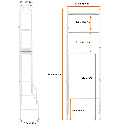 - 【يمنع الفوضى】: يحافظ هذا التخزين فوق المرحاض على حمامك خاليًا من الفوضى. يحتوي منظم رفوف الحمام على 3 مستويات، باستخدام المساحة فوق المرحاض للتخزين، يمكنك وضع المناشف أو ورق المرحاض أو الشامبو أو الشموع أو أي مستلزمات حمام أخرى.