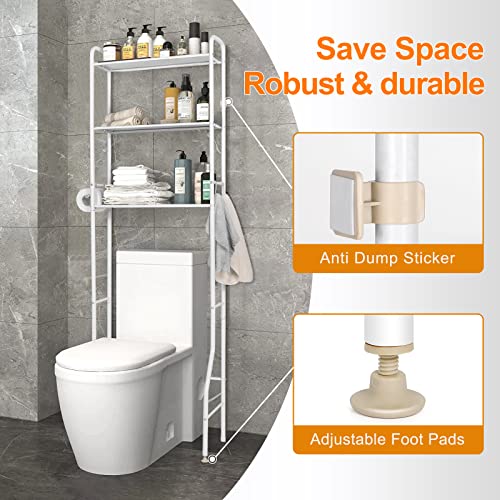 BHFOW - رف تخزين للمرحاض 3 طبقات موفر للمساحة للحمام فوق المرحاض منظم الحمام قائم بذاته مع خطافات ابيض أكريليك