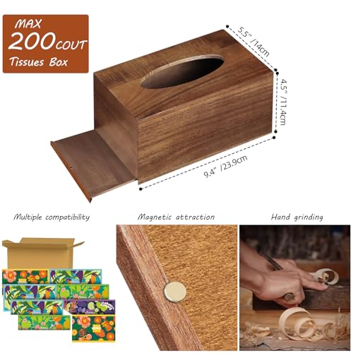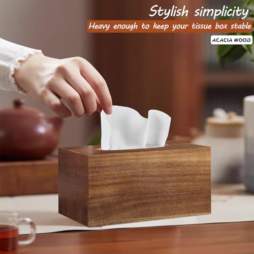 BIBELUN - غطاء علبة مناديل، غطاء علبة مناديل من خشب الاكاسيا مستطيل مع قاعدة منزلقة، حامل ديكوري خشبي لمناديل الوجه، منظم، وموزع لديكور الحمام، والمكتب، وغرفة النوم من بيبلون