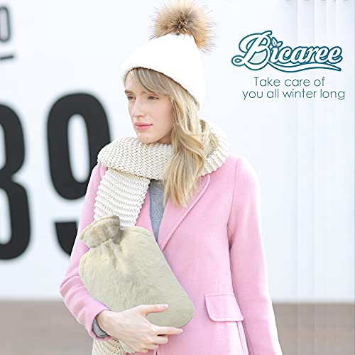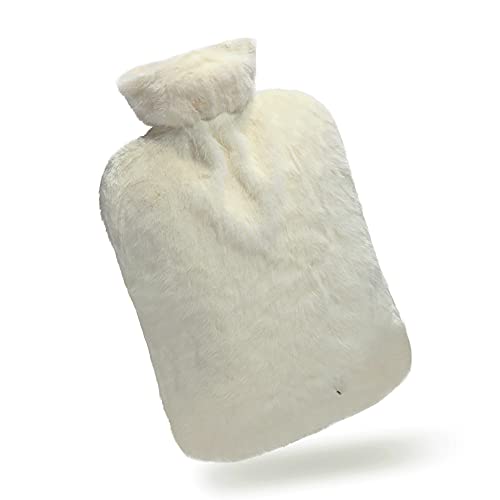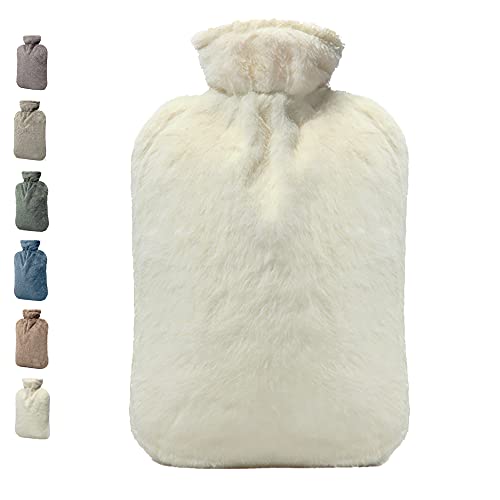 BICAREE - قربة مياه ساخنة بغطاء من بيكاري سعة 2 ل مصنوعة من بلاستيك بي في سي لتدفئة الرقبة والكتف والقدمين وتشنجات الدورة الشهرية والكمادات الساخنة والباردة (ليلي وايت)
