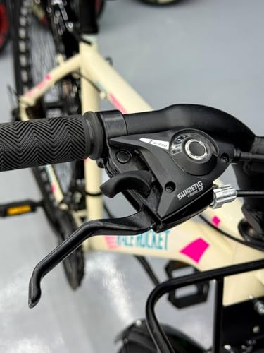- كماليات كاملة: تشمل سلة أمامية متينة لحمل الأغراض الشخصية، حامل خلفي، ومدعومة بتصميم أبيض مع لمسات وردية عصرية