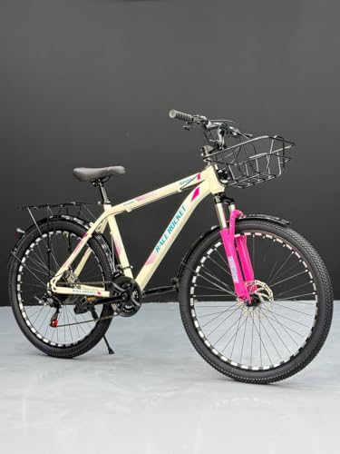 Generic - دراجة هوائية 26 بوصة، 21 سرعة، مع سلة أمامية وفرامل ديسك ومساعد أمامي