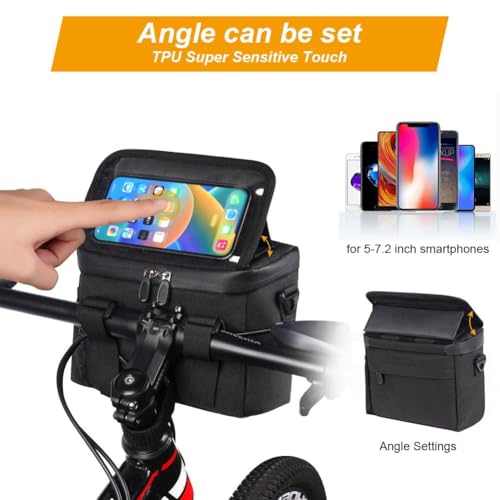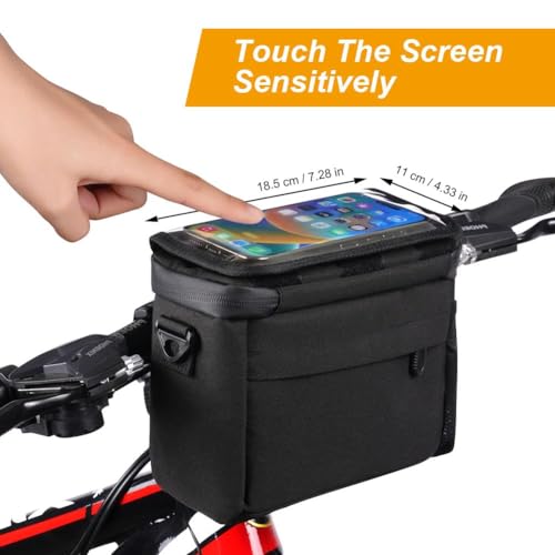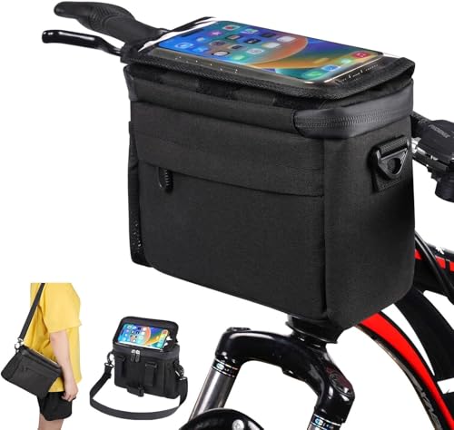 NAWOKEENY - شنطة أمامية للدراجة مع حامل هاتف بشاشة لمس من بلاستيك بي في سي، شنطة مقود الدراجة مقاومة للماء مع حزام كتف قابل للإزالة للحيوانات الأليفة والتسوق والركاب والتخييم
