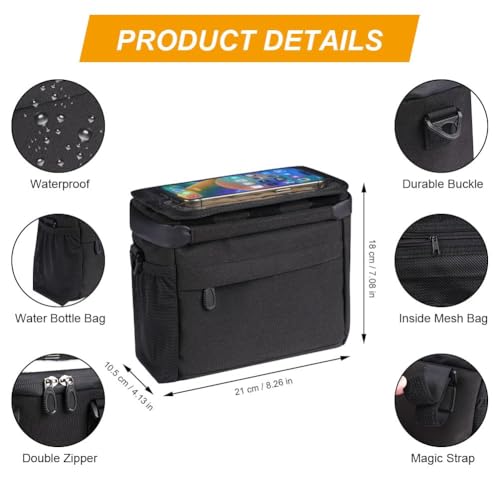 - حجم كبير وذات وزن خفيف: مقاس: 21 سم × 10.5 سم × 18 سم. تزن شنطة مقود الدراجة الخاصة بنا 300 جرام فقط. سعة كبيرة وخفيفة الوزن، مناسبة لتخزين الهواتف المحمولة والكاميرات والأشياء الشخصية.
