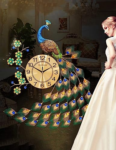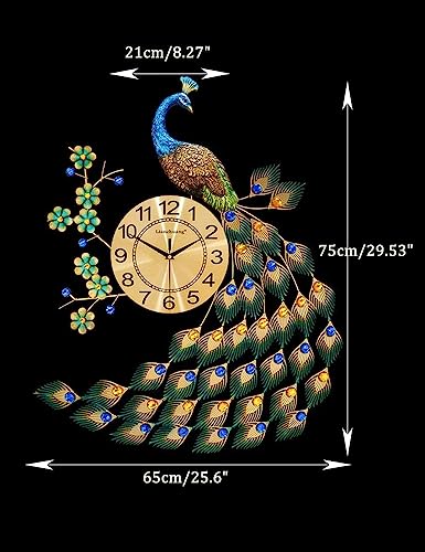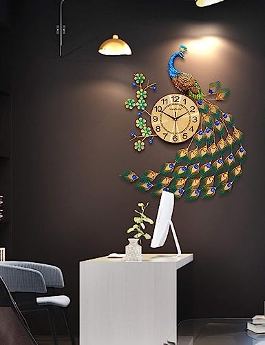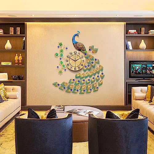 Bidesen - ساعة حائط عصرية كبيرة كوارتز كريستالية بتصميم طاووس لغرفة المعيشة والديكورات الفنية الابداعية للمنزل من بايدسين - (لون أخضر-KQ)