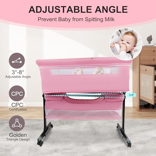 - 3 ارتفاعات قابلة للتعديل وزاوية أحادية الجانب: يتميز سرير بيروم بجانب السرير بسبعة مستويات علمية لتعديل التروس (من 49.53 سم إلى 52.83 سم من مرتبة السرير إلى الأرض). لا يقتصر على جانب السرير فحسب، بل مناسب أيضًا لجميع أنواع الكنب أو الأماكن الأخرى. وهذا سيجعل من السهل عليك العناية بطفلك، حتى في منتصف الليل. يتميز سرير الأطفال حديثي الولادة بتصميم عملي. بعد إطعام الطفل، يمكنك ضبط الزاوية لمنع الطفل من بصق الحليب.