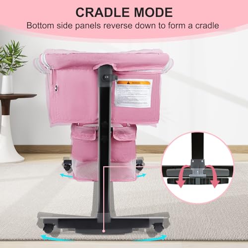 BIERUM - سرير أطفال 4 في 1 سرير بجانب السرير بارتفاع قابل للتعديل مع عجلات قابلة للقفل وشبكات ناموسية وشنطة تخزين كبيرة ومراتب مريحة من بيروم