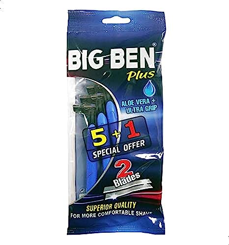 Big Ben - ماكينات حلاقة بشفرتين وشريط مرطب للاستخدام مرة واحدة من بيج بن، 6 قطع