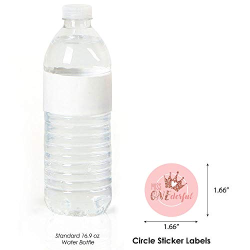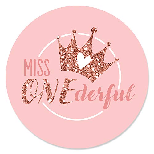 Big Dot of Happiness - ستيكر لاصق دائري ليتل ميس من بيج دوت اوف هابينس، مطبوع عليه عبارة "Miss Onederful"، مناسب للفتيات لعيد الميلاد الاول، عدد 24