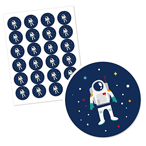 Big Dot of Happiness - ملصقات دائرية بتصميم سفينة صاروخ لحفلات استقبال المولود الجديد او اعياد الميلاد - 24 قطعة، من بيج دوت اوف هابينس