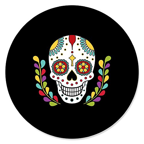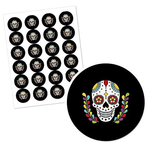 Big Dot of Happiness - بيج دوت اوف هابينيس ملصقات دائرية لحفلات الهالوين بتصميم جمجمة السكر من داي ذا ديد - 24 قطعة