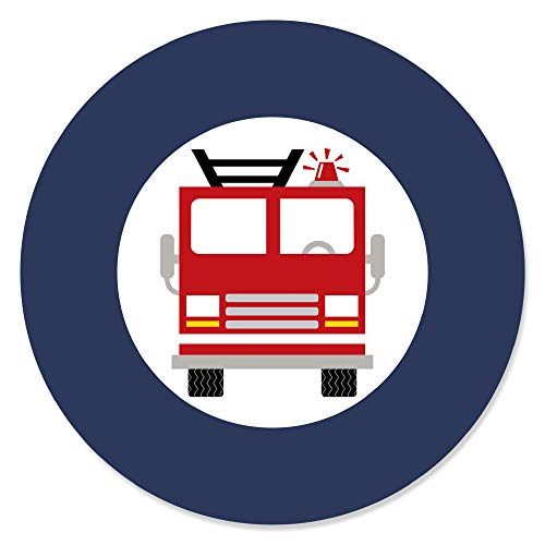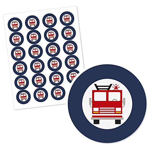 Big Dot of Happiness - ملصقات دائرية على شكل سيارة الإطفاء مناسبة لحفلات استقبال المولود الجديد وحفلات عيد الميلاد من بيج دوت اوف هابينيس، 24 قطعة