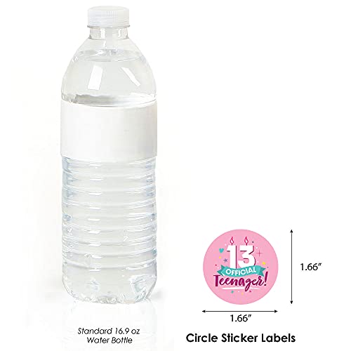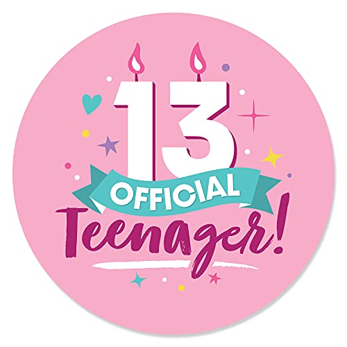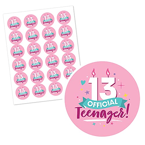 Big Dot of Happiness - بيج دوت اوف هابينيس ملصقات دائرية لعيد الميلاد الثالث عشر للبنات - ملصقات دائرية رسمية لحفلات اعياد الميلاد للمراهقات - 24 قطعة