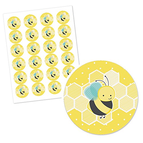 Big Dot of Happiness - ستيكر لاصق دائري على شكل عسل النحل من بيج دوت اوف هابينس، مناسب لحفلات اعياد الميلاد او حفلات السبوع، 24 قطعة، الورق