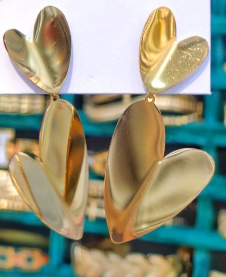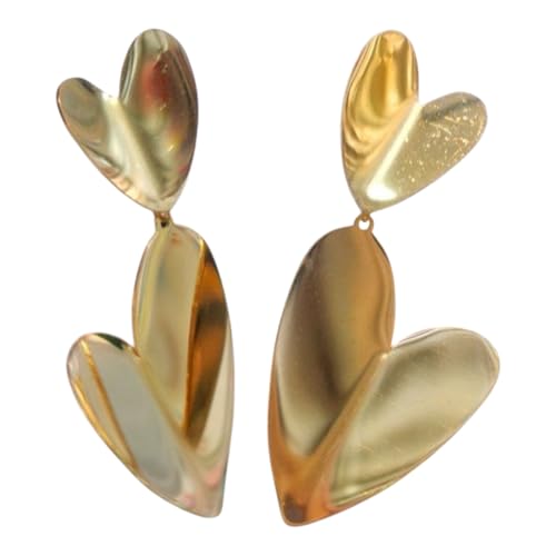 Generic - أقراط قلب ذهبية كبيرة متدلية، طراز عصري، لامعة