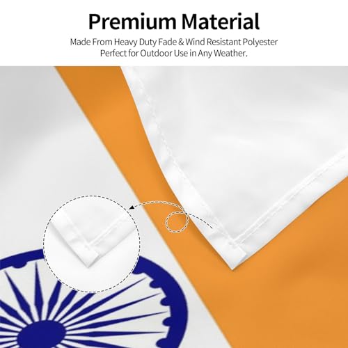 - [أعلام هندية عالية الجودة] - مصنوعة من قماش أكسفورد عالي الجودة مع حلقتين نحاسيتين وخياطة مزدوجة، ألوان زاهية، مقاومة للبهتان، متينة، ترفرف مع الرياح.