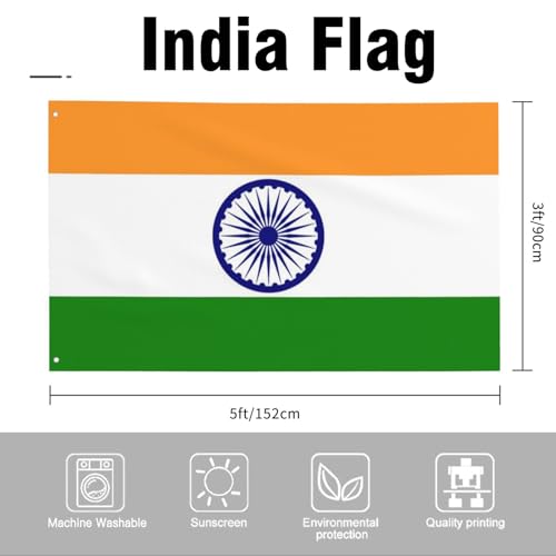 - [مقاس كبير] - علم الهند 3 قدم × 5 قدم (90 × 150 سم) خفيف الوزن، مما يجعله مثاليًا للاستخدام في مناطق الرياح المنخفضة. (لا يُنصح باستخدامه في الهواء الطلق في المناطق شديدة الرياح)
