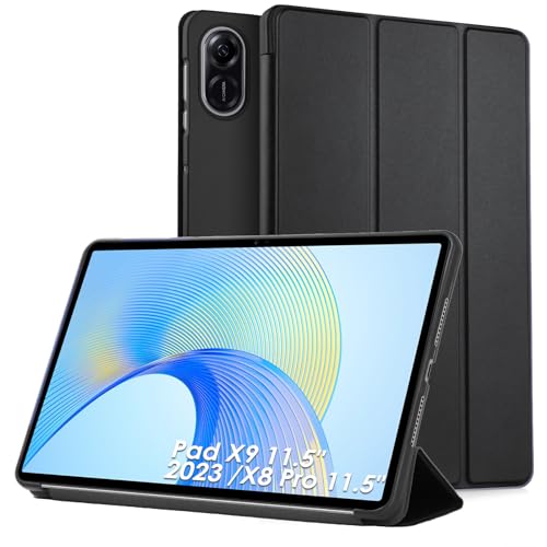 Bighan - جراب حماية ذكي رفيع بمسند ثلاثي الطيات ووظيفة السكون التلقائي من بيغان لجهاز هونر باد X9 11.5 بوصة 2023/X8 برو 11.5 2023 اسود، جلد صناعي من البولي كربونات