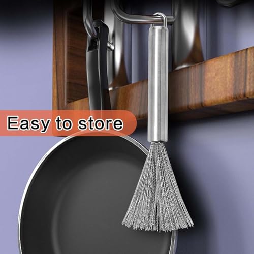 BIGTHREE - فرشاة وعاء من الستانلس ستيل بمقبض طويل من بيجثري، فرشاة معدنية لتنظيف المطبخ، تنظيف فعال ومتين، مناسبة لتنظيف الاواني والاحواض وغيرها في المطبخ