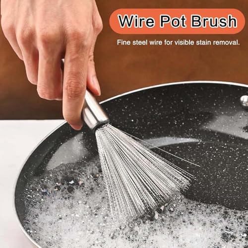 - 【فرشاة سلكية】: تتميز فرشاة الأواني المصنوعة من الستانلس ستيل بشعيرات متينة ذات كثافة عالية يمكنها بسهولة إزالة البقع من مجموعة متنوعة من الأسطح دون خدش أو خدش.
