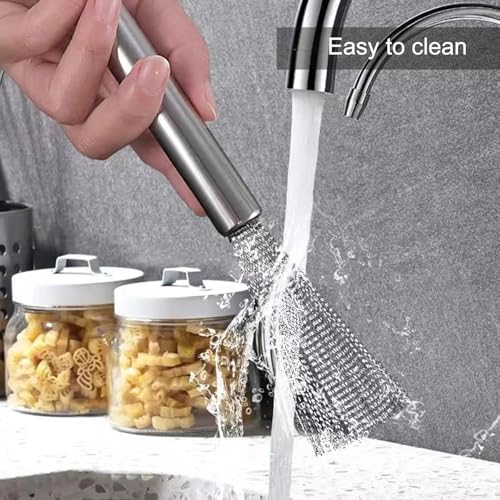 - 【مواد عالية الجودة】: فرشاة الأواني المصنوعة من الستانلس ستيل مصنوعة من الستانلس ستيل عالي الجودة. إنه قوي ومتين ومقاوم للصدأ وليس من السهل إتلافه. مناسبة للاستخدام طويل الأمد في المطبخ دون القلق بشأن مشاكل الجودة!