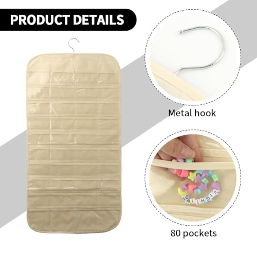 - مساحة تخزين وفيرة: يحتوي المنظم المعلق للمجوهرات على 80 جيب، ليتيح لك ترتيب مجوهراتك بشكل مرتب وسهل الوصول إليه. سواء كانت خواتم، حلقان، سلاسل، أساور أو حتى الاكسسوارات الصغيرة، فستجد لكل قطعة مكانها الخاص، ليبقى كل شيء مرتبًا وسهل الوصول إليه.