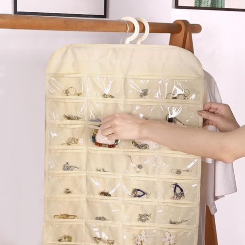 BIGTHREE - منظم مجوهرات معلق من بيج ثري، منظم لتخزين الحلقان على الجانب مع 80 جيب للاكسسوارات والمجوهرات بخطاف للتعليق، حامل عرض للخواتم والسلاسل