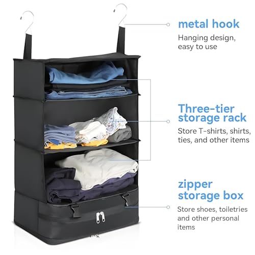 BIGTHREE - شنط رفوف معلقة محمولة من بيجثري، منظم امتعة السفر، منظم شنط السفر، 3 ارفف، حقيبة تخزين قابلة للطي، حقيبة تخزين معلقة لخزانة الملابس