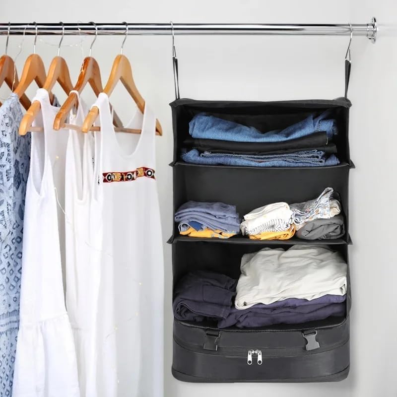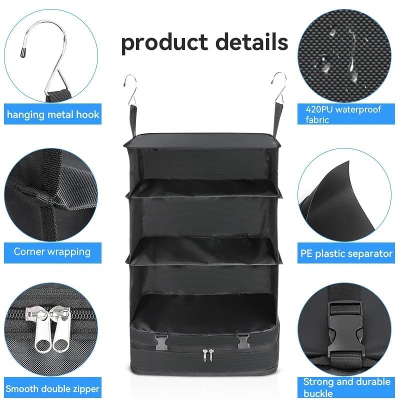 - 【كفاءة تخزين متعددة الطبقات】تتميز حقائب الرفوف المعلقة المحمولة بثلاثة مساحات تخزين واسعة، مثالية لتصنيف أساسيات السفر مثل الملابس وأدوات النظافة والإكسسوارات. بفضل الأرفف المعززة والتصميم القابل للطي، يضمن منظم حقائب السفر هذا تعبئة خالية من الفوضى والوصول السريع إلى العناصر، مما يجعله مثاليًا للحفاظ على حقائب السفر مرتبة أثناء الرحلات.