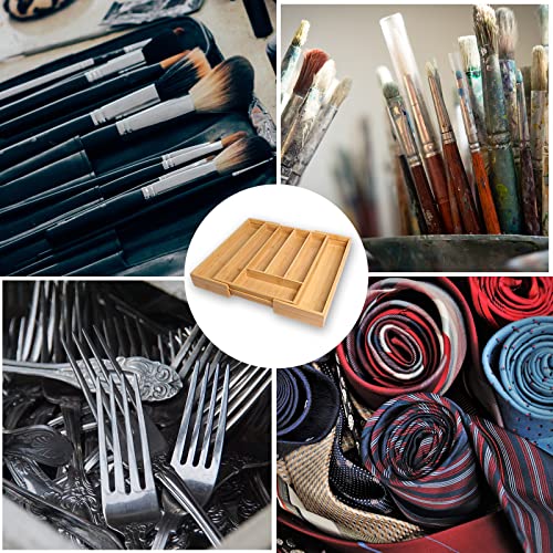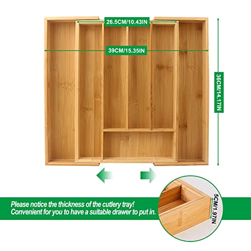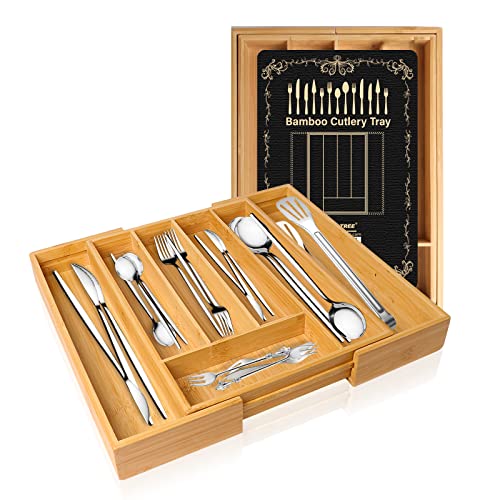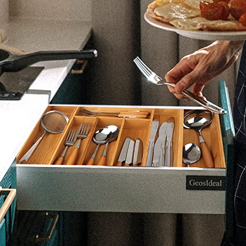 Big Tree - منظم ادراج المطبخ من الخيزران ومنظم الاواني ادوات المائدة الفضية مع فواصل مخددة لاواني وادوات وغرفة النوم والمكتب