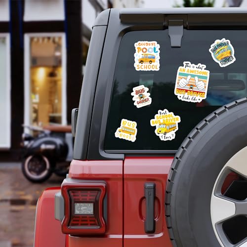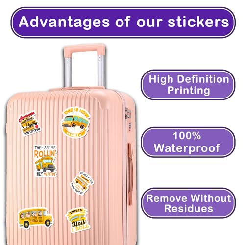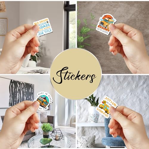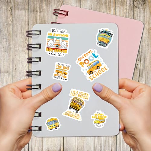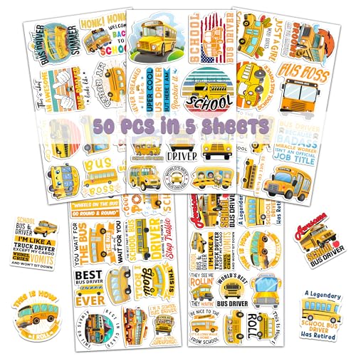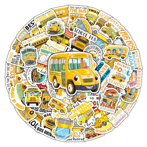 BIGZORO - ستيكرات بتصميم سائقي باصات المدارس، من الفينيل مقاومة للماء لأعياد الميلاد لسائقي الباصات والآباء والرجال، اكسسوارات ديكوري للاب توب وزجاجات المياه، رسومات بطابع وسائل النقل من بيجزورو - 50 قطعة