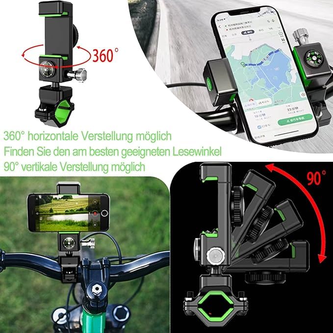 - 📱【دوران حر 360 درجة + مقابض مغلقة】يمكنك ضبط حامل الموبايل بحرية وفقًا لزاوية الرؤية المثالية (أفقيًا أو رأسيًا أو أي زاوية تريدها). مقابض مغلقة على الطرق الوعرة، حتى تتمكن دائمًا من الحفاظ على الزاوية التي تريدها وتحظى وبركوب وتصوير أكثر ملاءمة.