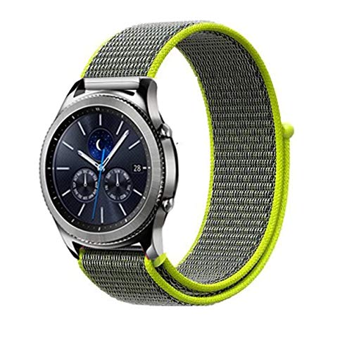 Bikson - سوار معصم رياضي مريح من النايلون المنسوج لساعة سامسونج جالكسي جير اس 3 فرونتير / كلاسيك - اصفر ساطع، للجنسين