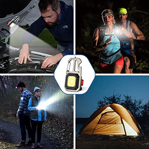 BILIPLE - مصباح يدوي ليد صغير من بيليبل، 3 مصابيح سي او بي للعمل مع سلسلة مفاتيح، مصباح يدوي مقاوم للماء وقابل لإعادة الشحن بمنفذ USB، مع 4 أوضاع 500 لومن، مصباح يدوي محمول للطوارئ