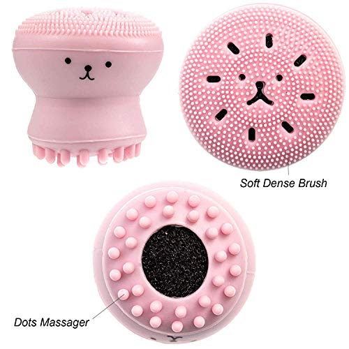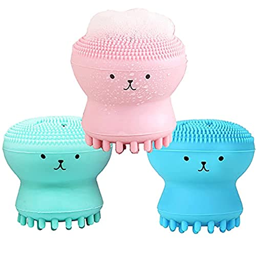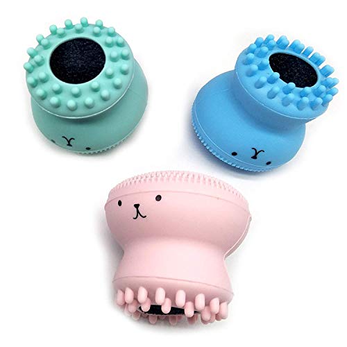 - فرشاة سيليكون لقنديل البحر لتنظيف المسام العميقة مع اسفنجة تنظيف اقتصادية 3 قطع، فرش مانويل ناعمة الكل في واحد للعناية بالبشرة وتقشير وتدليك وإزالة الرؤوس السوداء