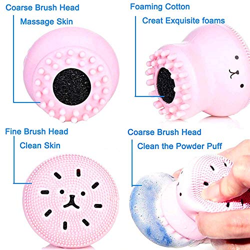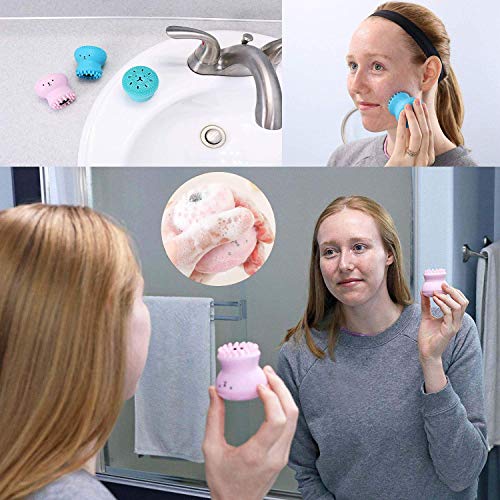 Spaceshoop - فرشاة تنظيف الوجه من قنديل البحر من السيليكون للمسام العميقة مع إسفنجة للتنظيف بقيمة 3 عبوات ، فرش مانويل ناعمة الكل في واحد للعناية بالبشرة وتقشير وإزالة الرؤوس السوداء